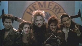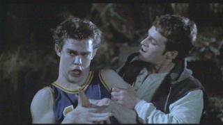 The next day at school the girls talk about picking a theme for the senior dance with a girl named Cassandra. They choose the environment. The principal reminds them they are late for class. They agree to meet tomorrow at a cafe. At the cafe Kimberly shows up wearing the jacket from the mall. She says it's retro now. Pike and Benny walk in and spend all their money on a hotdog, which they split. The pair are obviously drunk. They recognize the girls as the annoying ones from the movies. Benny makes an obscene gesture to Buffy and Buffy reacts by cutting his hot dog into pieces with a knife from the table. Later the drunk pair are walking in the hills and complain about how they hate those girls, but would sleep with them. The vampire who took Grueller takes Benny, but the man from the mall shows up and saves Pike from the same fate by giving him a ride home.