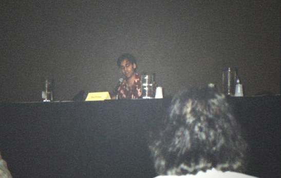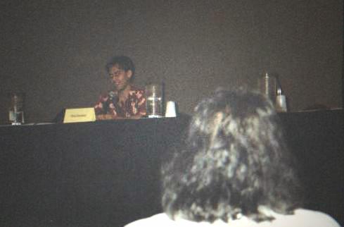 Mark was trying to find a mic that worked. There were about eight mics on the table, and none of them, except Andy's was working. So there was a really funny few moments where he was testing them all, and moving them all around. Finally they got them working. Andy asked Mark about his projects and he said something about guesting on a new X-men based show in October. I think it's Mutant X. And he's playing a pretty evil guy named Eric Tanner? My notes are really illegible here. But I think Andy teased that he was playing himself.