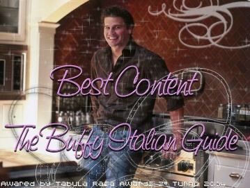 Best site Salve a tutti. Allora per Best site la mia preferenza va a ForeverBuffy. Per me il miglior sito deve avere delle sezioni Base:(guida agli episodi, news, spoiler, gallery, download) + altre sezioni più o meno originali per arricchire il proprio sito. Inoltre anche la frequenza delle news e la grafica influiscono. Per tutti questi fattori ho scelto ForeverBuffy. Oltre ad essere l'unico che riporta le news con frequenza, le sezioni base sono ben curate e le sezioni in più sono molto originali e ricche. La grafica non eccellente ma semplice e riposante, si plasma alla struttura del sito.
