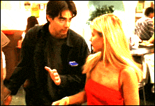 bags, to help her steal food from the dining hall. Buffy and Willow are hanging at the Bronze, later. Buffy is watching Parker through a mirror, who is playing pool.